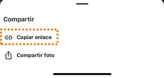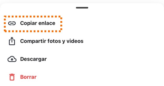 3. Pulse Compartir enlace en la lista que aparece en la parte inferior de la pantalla. El enlace (URL) se copiará en el portapapeles y podrá pegarlo en cualquier lugar que necesite (navegador, correo electrónico, etc.).