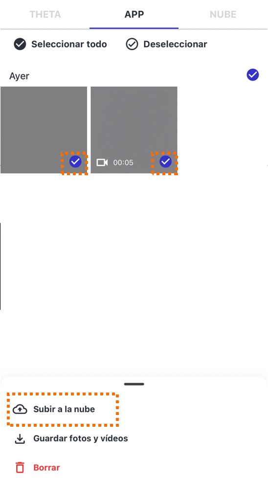 Subir al Cloud las imágenes transferidas de la THETA al smartphone