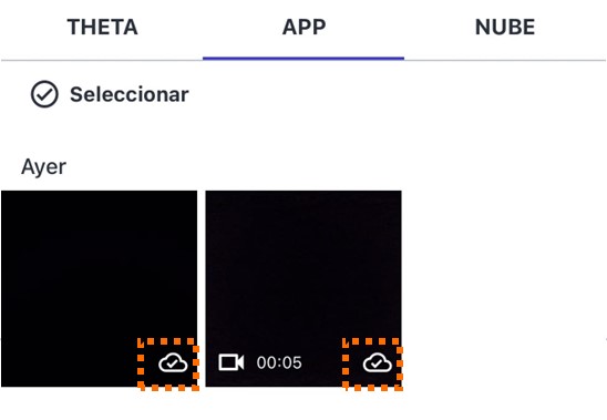 La miniatura de las fotos cargadas en RICOH360 Nube mostrará un «icono de carga» en la esquina inferior derecha.