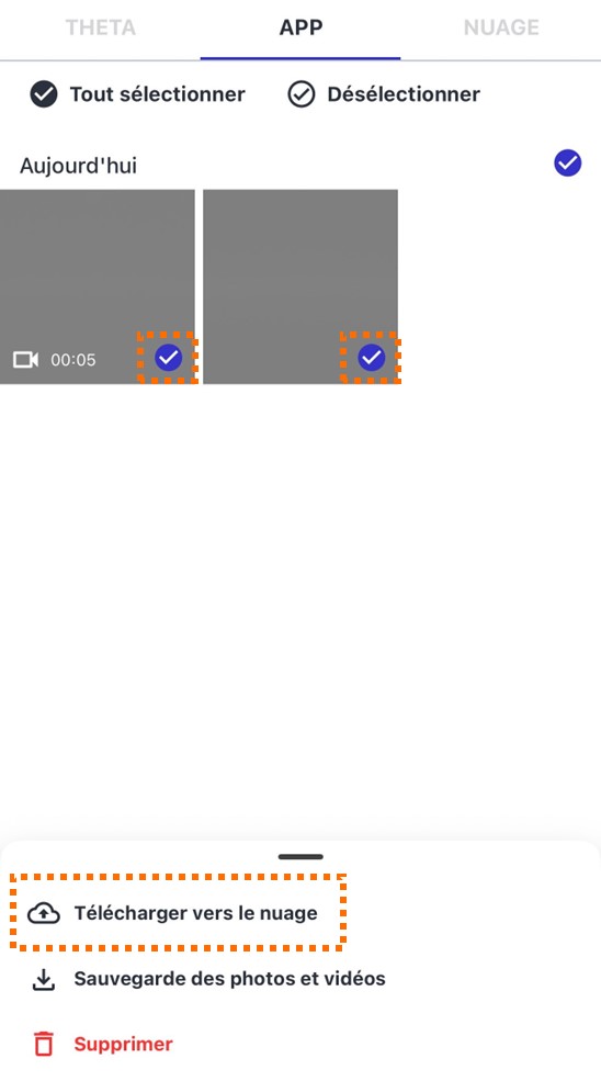 Envoyer les images transférées de la THETA vers le smartphone au cloud