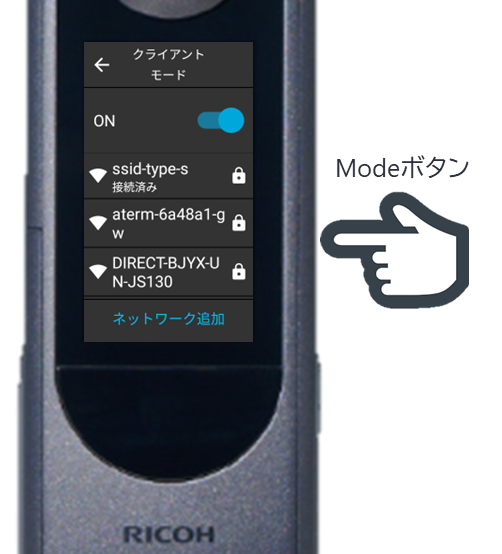 1.THETAの撮影画面でModeボタンを長押しする(プラグインの終了)