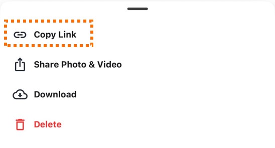 3. Tap LinkCopy Link from the list displayed at the bottom of the screen. The link (URL) will be copied to the clipboard, and you can paste it anywhere you need (browser, e-mail, etc.).